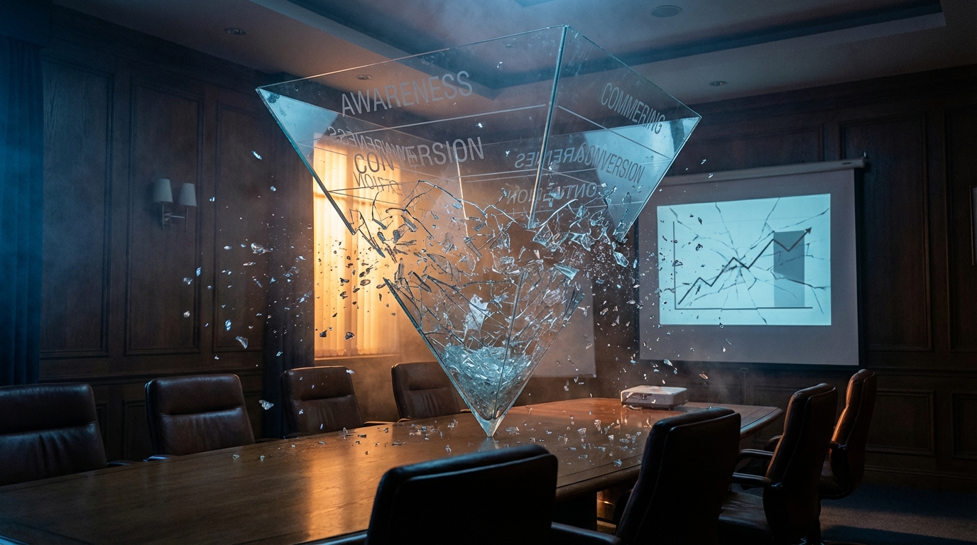 マーケティングファネルは何十年も提案書に描かれ続けている。だが、この逆三角形の通りに人が動いた証拠を、誰も見たことがない。